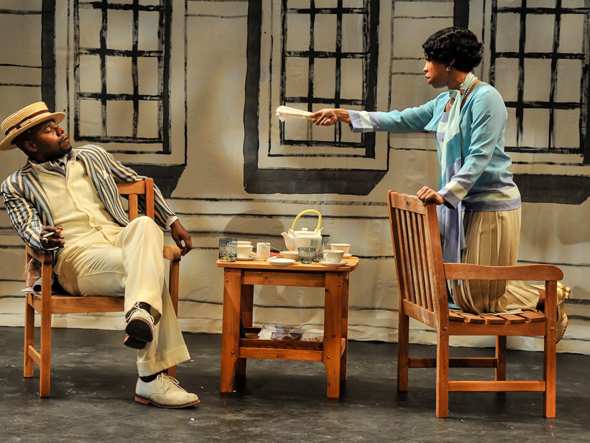 The newly launched August Strindberg Repertory Theatre has joined with the Negro Ensemble Company for this, their inaugural production, and while they should be praised for the unusual choice of Playing with Fire, there is little else to recommend the show. Updated and relocated to 1920s Martha’s Vineyard, adaptor Leslie Lee has inserted a series of references to Black class dynamics that are awkward and forced. Occasionally, Newt’s mother (Elizabeth Flax) will allude to the NAACP or to acquaintances who have decided to pass, but the addition of race commentary is not earned; it is too sporadic and plays like an afterthought—it has not been seriously integrated into Strindberg’s original text.