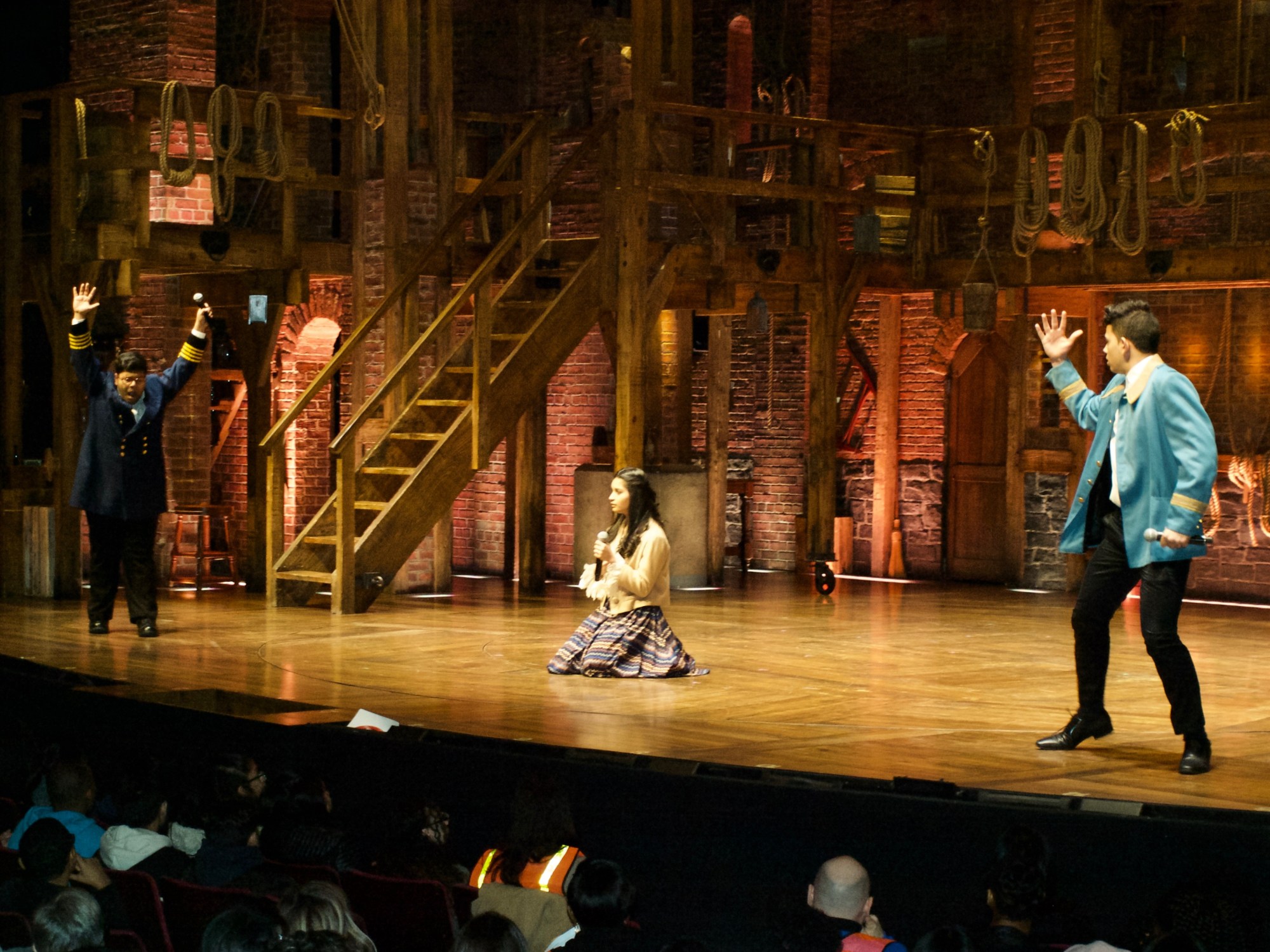 What a delight, then, that EduHam, an initiative from The Gilder Lehrman Institute and The Rockefeller Foundation, invites thousands of low-income high schoolers to attend Hamilton for $10. The afternoon I came, 1300 kids—along with their teachers in traffic vests—laughed and hooted through the show after watching a handful of their peers perform their own historical scenes on the stage of the Richard Rodgers Theatre.