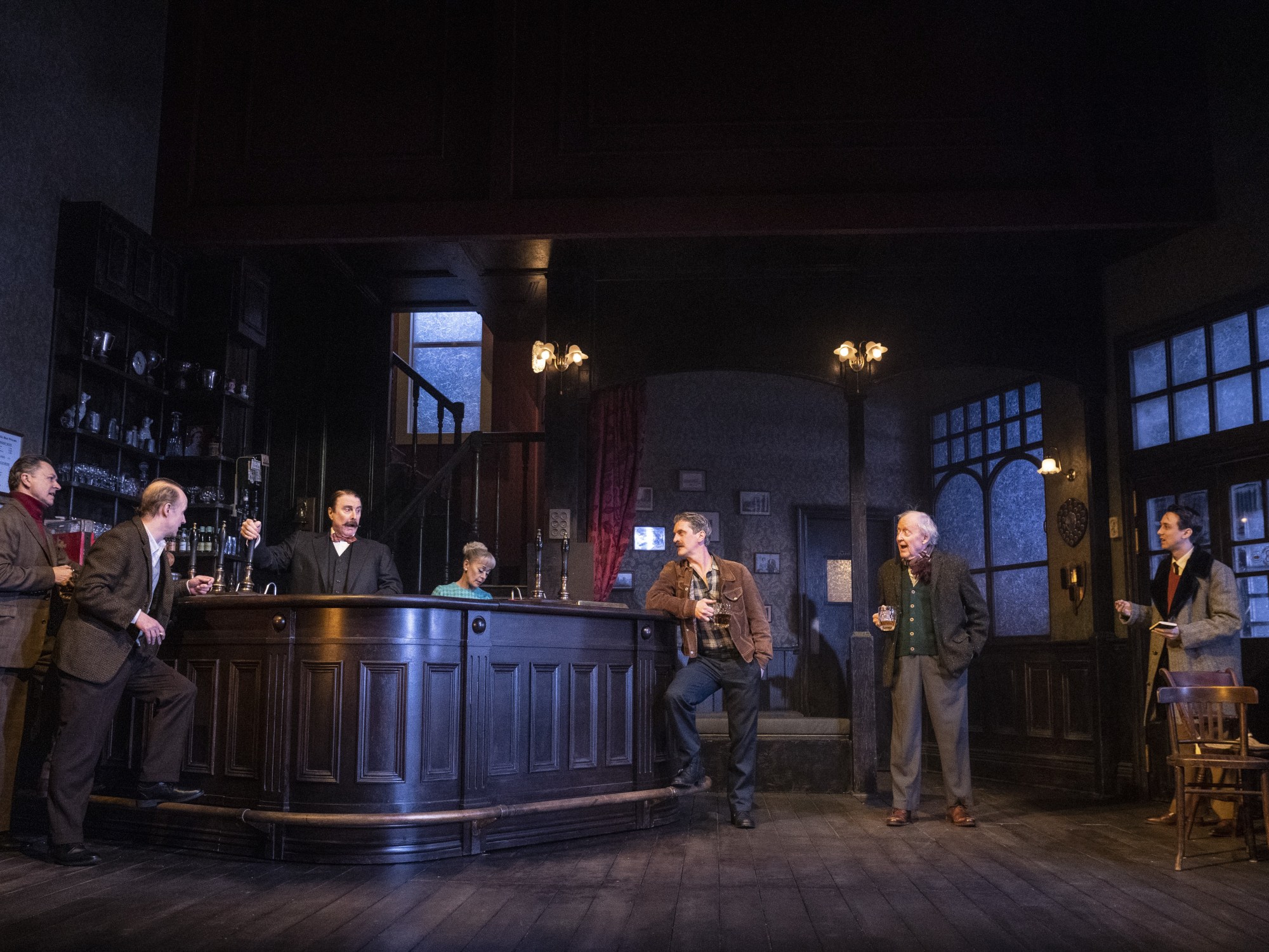 The cast is uniformly excellent, meeting a text which calls for performances that are less natural than archetypal. Much of the pleasure of Hangmen comes in how expertly McDonagh has written dialogue for these recognizable types; as the setting is a pub, these include a variety of great talkers. My personal favorite is Charlie (Ryan Pope), who repeats to his hard-of-hearing companion (John Horton) nearly everything Harry says and who reminds me of a few older audience members I’ve heard over the years. The set, too, is phenomenal—Hangmen benefits from the transfer to the larger John Golden Theatre—and the working tap from which Harry and his family pull a dozen or more pints is spectacular.